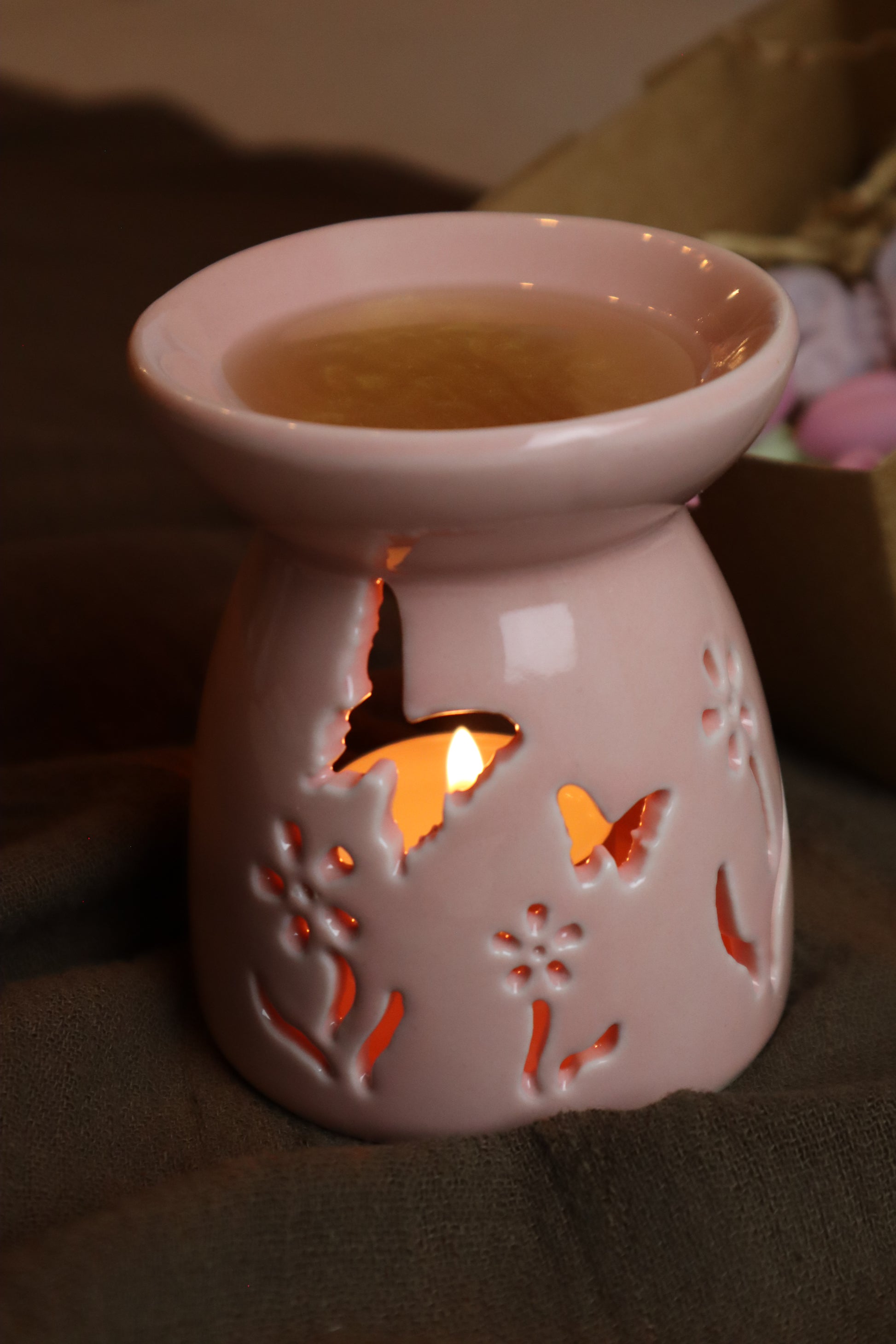 Laat je betoveren door Aurora, een romantische waxbrander vol levendige lente- en zomervibes. De opvallende vlinders dansen rond de bloemen en laten het kaarslicht sprankelen, voor een vrolijke, dromerige en romantische sfeer