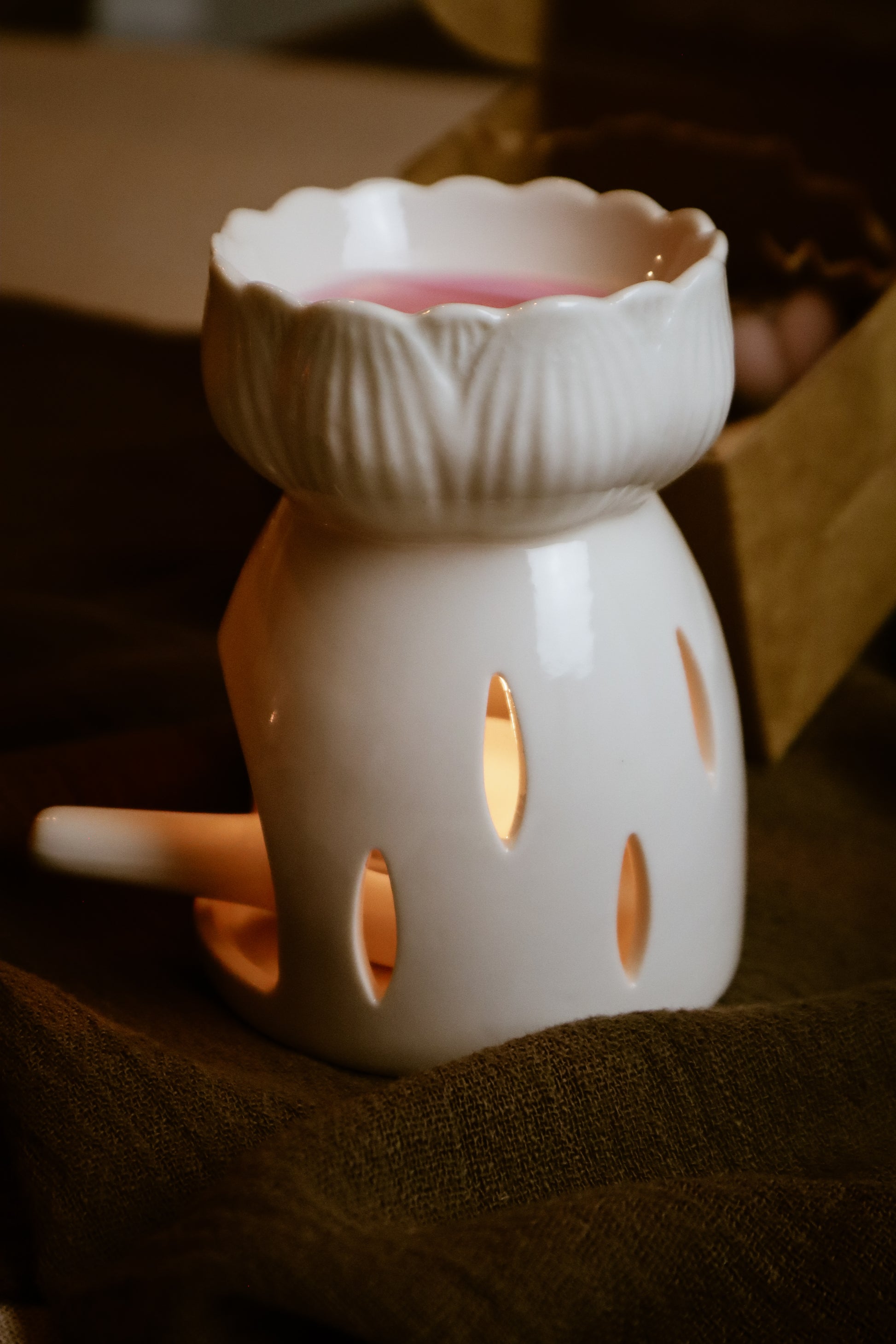 Gloria schittert in elegantie. De verfijnde bloemvorm met sierlijke gaatjes laat het kaarslicht prachtig weerkaatsen, terwijl het handige lepeltje je theelichtje perfect plaatst. Een luxueuze toevoeging voor iedere ruimte die warmte en stijl verdient.